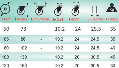Roulettes pivotantes à oeil spécialement étudiées pour les collectivités, des roulettes de manutention sur sols durs et lisses pour tous déplacements sur plateau. Roulettes pivotantes vendues à la pièce et se déclinant en 4 tailles (50, 65, 80 et 100 mm).