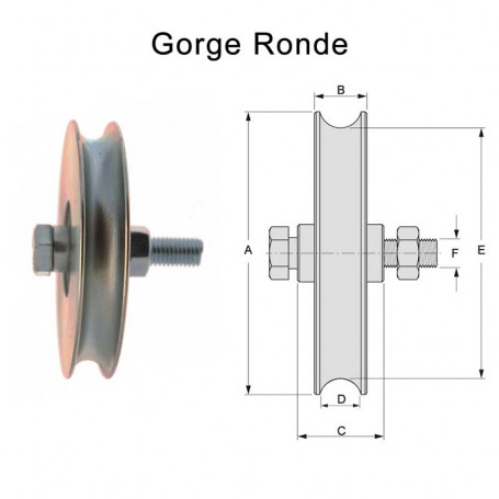Galets de portail (cote A) en acier bichromaté à gorge ronde.