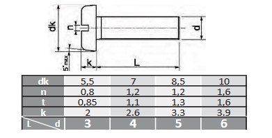 Retrouvez ci-dessus toutes les cotes des vis nylon ou plastique à tête cylindrique et fendue.