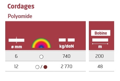Cordage à torons polyamide conforme à la norme EN 696 - NF G 36.012 - ISO 1140, vendu au mètre.
