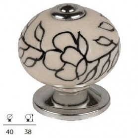 Le Bouton décoratif de meuble en porcelaine Blanc et fleurs noires est vendu à la pièce avec sa vis de fixation.